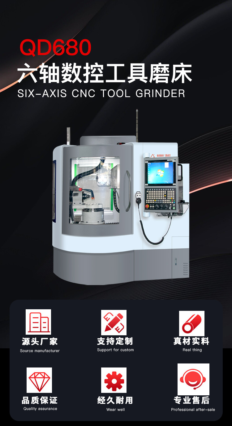 QD680六軸五聯(lián)動數(shù)控工具磨床,適用于生產(chǎn)或修磨小規(guī)格銑削類刀具、鉆削類刀具、成形刀具等